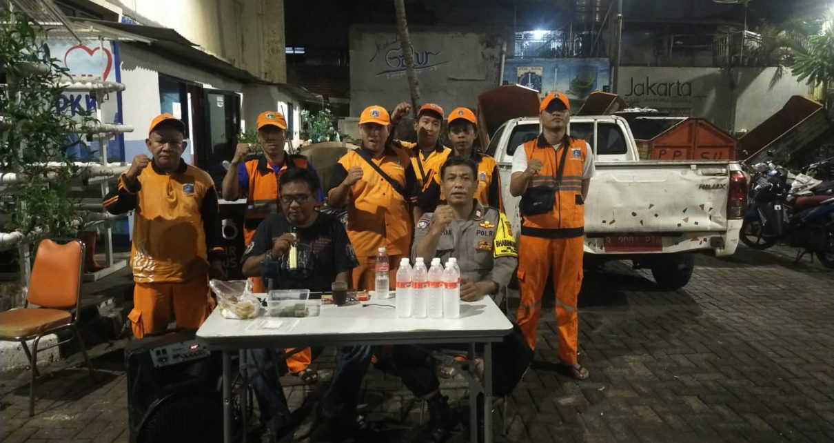 EKSNEWS.ID | Jakarta Pusat – Bhabinkamtibmas Kelurahan Kelurahan Galur Aiptu Baktiar sambang wilayah untuk memberikan himbauan Kamtibmas kepada petugas PPSU dan FKDM di kantor Kelurahan Galur Jl. Galur Raya RW 04 Johar Baru Jakpus. Selasa (7/5/2024).