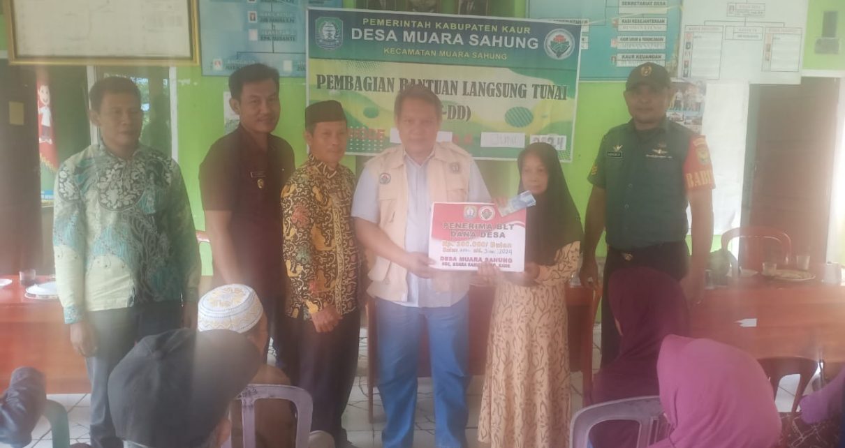 EKSNEWS.ID | Kaur Bengkulu — Sebanyak 27 Keluarga Penerima Manfaat (KPM) Bantuan Langsung Tunai Dana Desa (BLT-DD) untuk triwulan tahap kedua Desa Muara Sahung Kecamatan Muara Sahung Kabupaten Kaur, menjelang hari raya idul Adha 1445 Hijriah (H) sudah selesai disalurkan ke warga masyarakat Desa setempat, Kamis (13/6/2024).