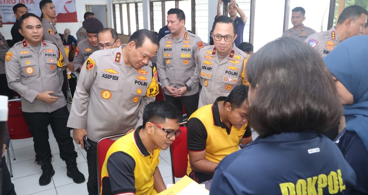 Kapolda Metro Jaya Irjen Pol Asep Edi Suheri bersama Wakapolda Metro Jaya Brigjen Pol Dekananto Eko Purwono serta diikuti oleh para Pejabat Utama Polda Metro Jaya yang turut berpartisipasi dalam kegiatan donor darah. Secara keseluruhan, sebanyak 165 anggota Polda Metro Jaya, termasuk Pejabat Utama, ikut mendonorkan darahnya sebagai bentuk kepedulian sosial terhadap sesama.